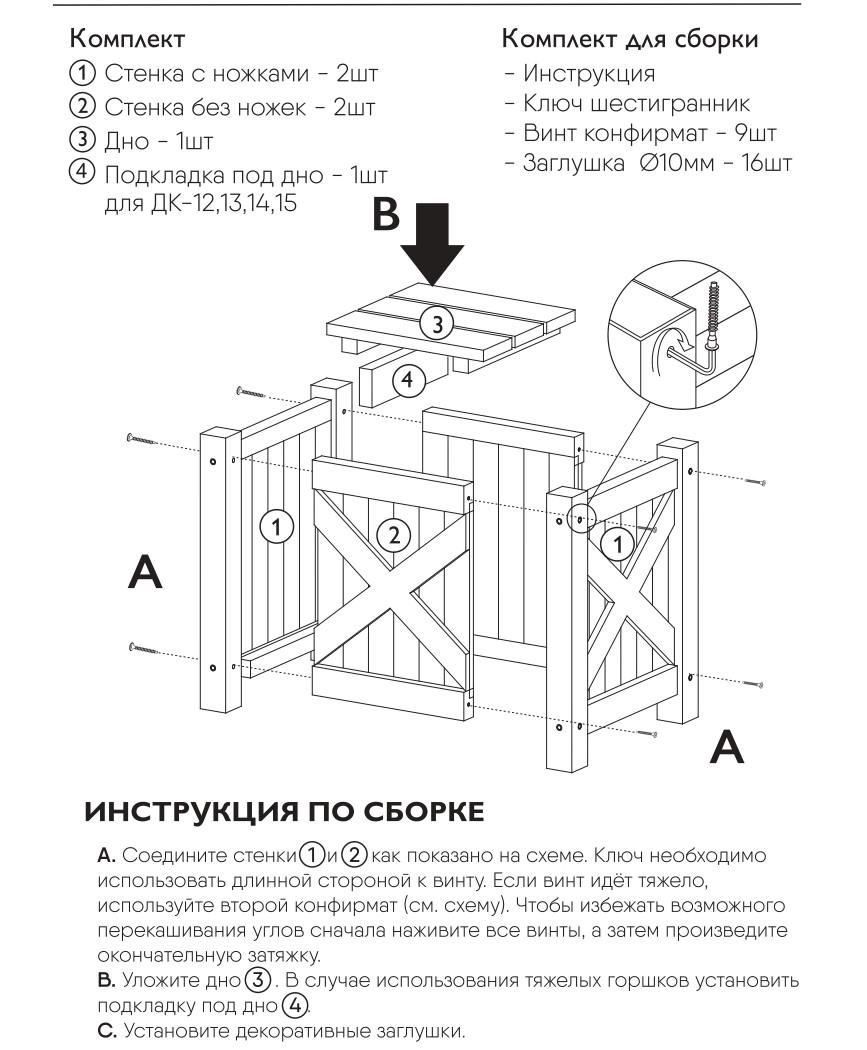 Кашпо выполнено из массива дерева в очень популярном стиле "Прованс" Подходит как для уличного использования, так и для использования в помещениях, широко применяются в торговых центрах и различных заведениях. Особенности конструкции: - массив Ели, сорт А, камерная сушка (сращенная древесина не допускается) - неразборные части собраны на влагостойкий клей D4 - разборные элементы соединяются на Евро-вины - хорошо отшлифовано (подготовлено под покраску, но может использоваться и без покраски) Использование: - в классическом виде, то есть для установки ёмкости внутрь - в качестве самостоятельной ёмкости, для этого внутрь укладывается любой нетканый материал или пакет(например, пакет под мусор), но при таком варианте необходимы отверстия в дне пакета для слива избыточной влаги от дождей, либо дренаж, при использовании в помещении. Максимальные размер ёмкости для установки внутрь: - Круглые –2шт диаметром – до 40 см; высотой – до 44 см - Прямоугольные – ширина – до 40 см; длина – до 80 см; высота – до 44 см Максимальный объём земли при использовании без ёмкости – 140 литров